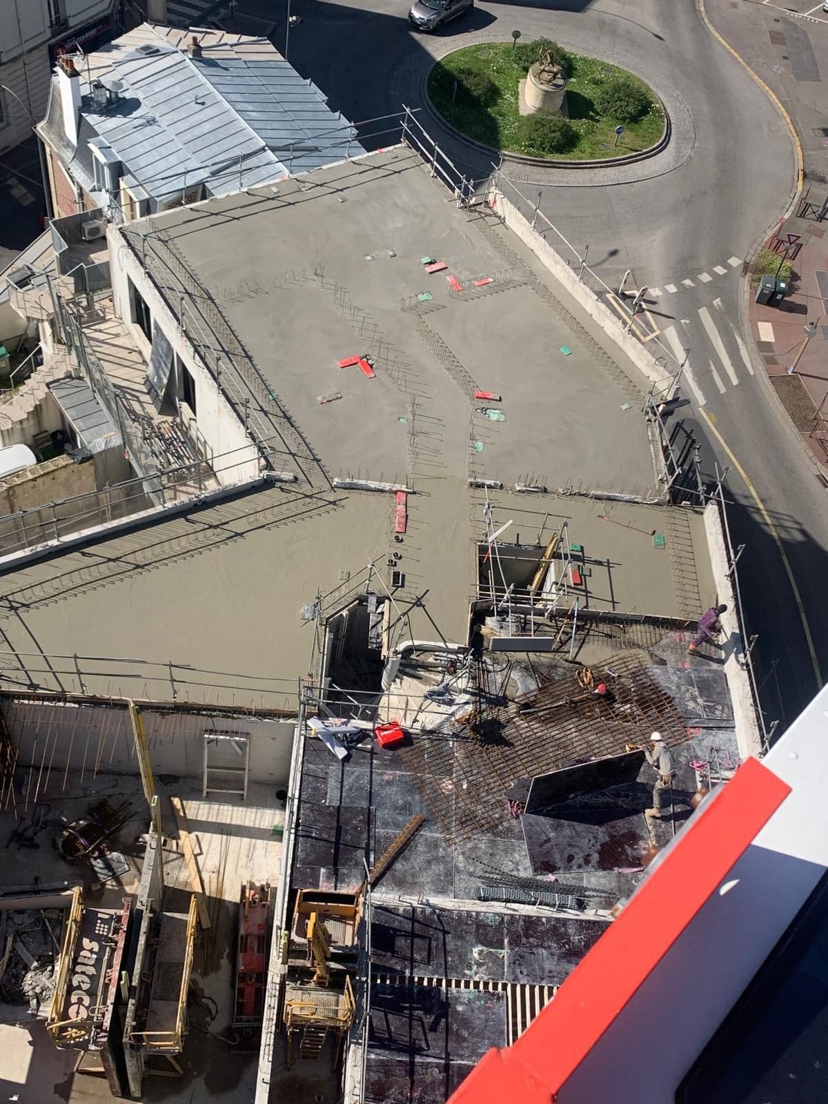 Vue de la grue : voiles et plancher haut R+4 en cours
